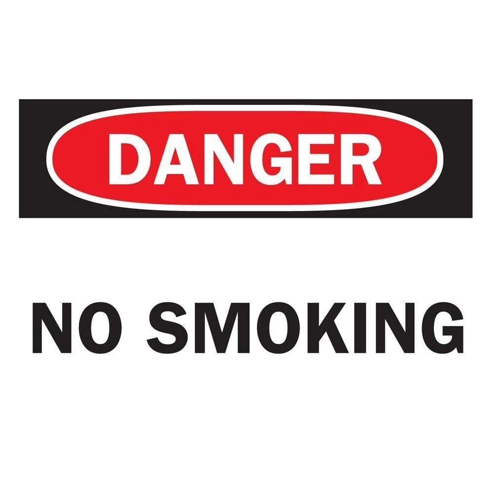 Alert others to a fire hazard with the Brady 10 in. x 14 in. Plastic Danger No Smoking OSHA Safety Sign. Bold red and black graphics on a white background stand out clearly and visibly to attract immediate attention.