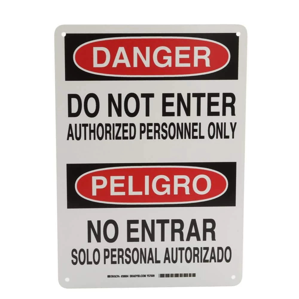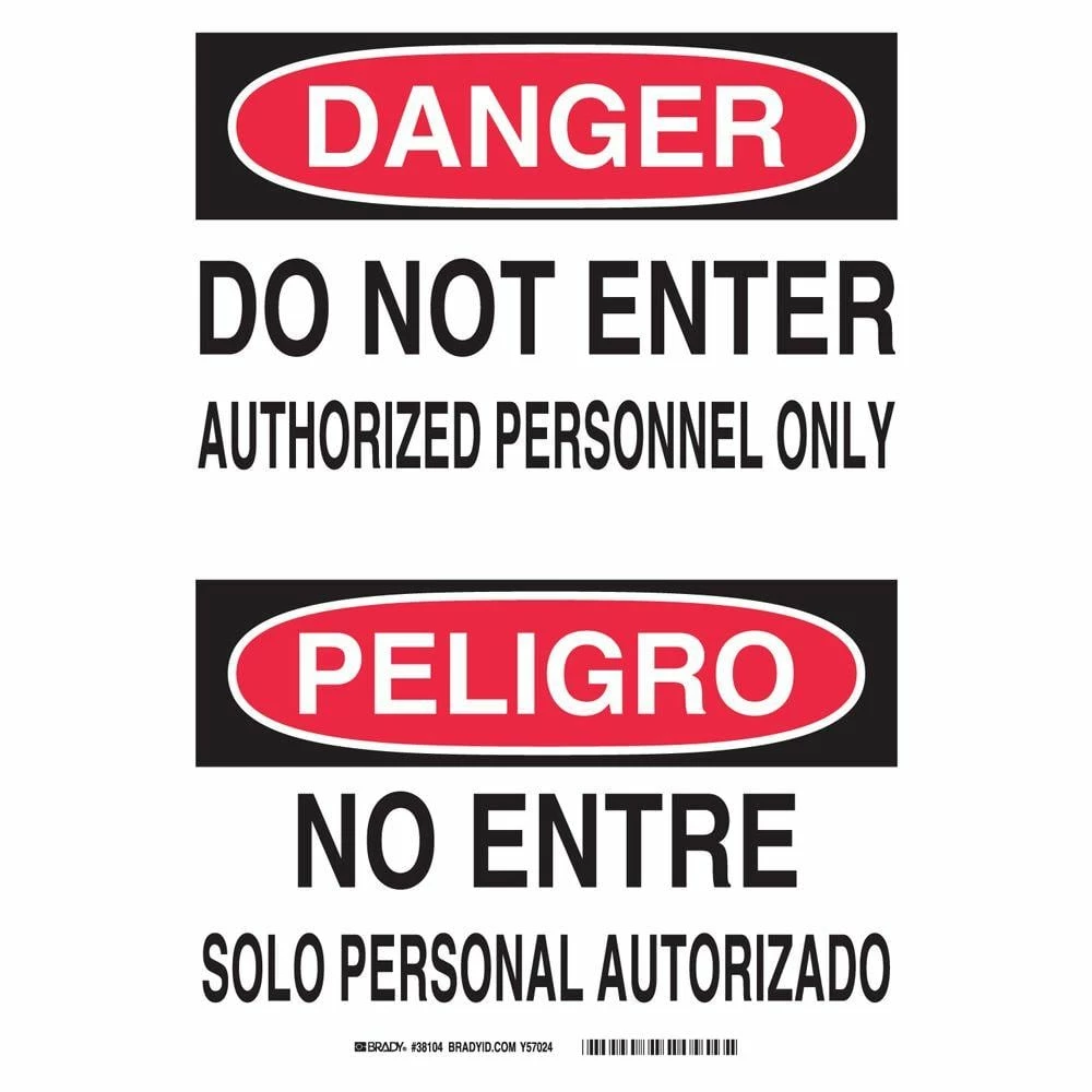 Easily indicate special access areas with this 14 in. x 10 in. Plastic Danger Do Not Enter Authorized Personnel Only English/Spanish OSHA Sign. It comes with an easy installation process. The sign features bold letters and graphics.