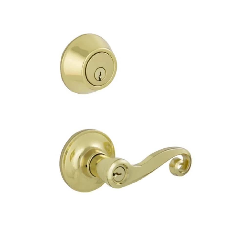 The ESSENTIALS By Schlage Bright Brass Single Cylinder Deadbolt and Acton Keyed Entry Lever offers strength and durability from a trusted name in security at a great value. It is ideal for when you want added security on residential exterior doors. It is guaranteed to fit all standard doors and installs in minutes with just a screwdriver. Plus, it is backed by our limited lifetime mechanical guarantee.