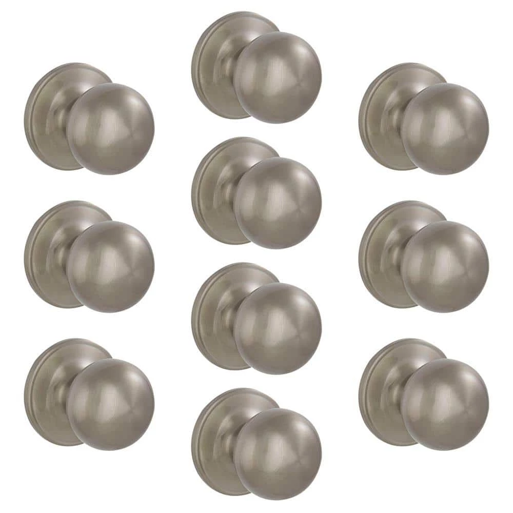 The ESSENTIALS by Schlage Jeffir Satin Nickel Hall/Closet Passage Knob 10-Pack offers durability and convenience from a trusted name in door hardware at a great value. It is non-locking and ideal for interior hall and closet doors. It is guaranteed to fit all standard doors and installs in-minutes with just a screwdriver. Plus, it is backed by our limited lifetime mechanical guarantee.