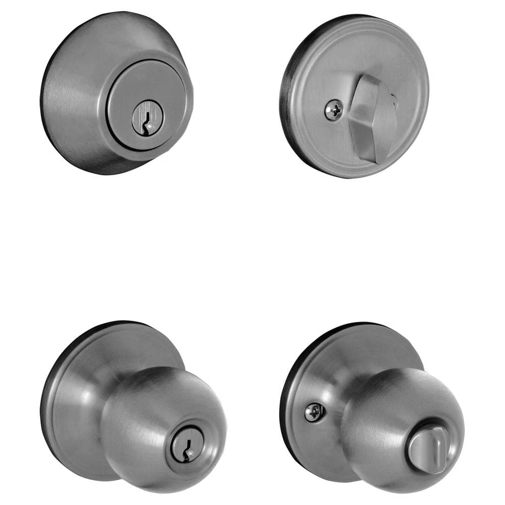 - Includes 1 single cylinder deadbolt and 1 keyed entry door knob keyed alike for convenience
