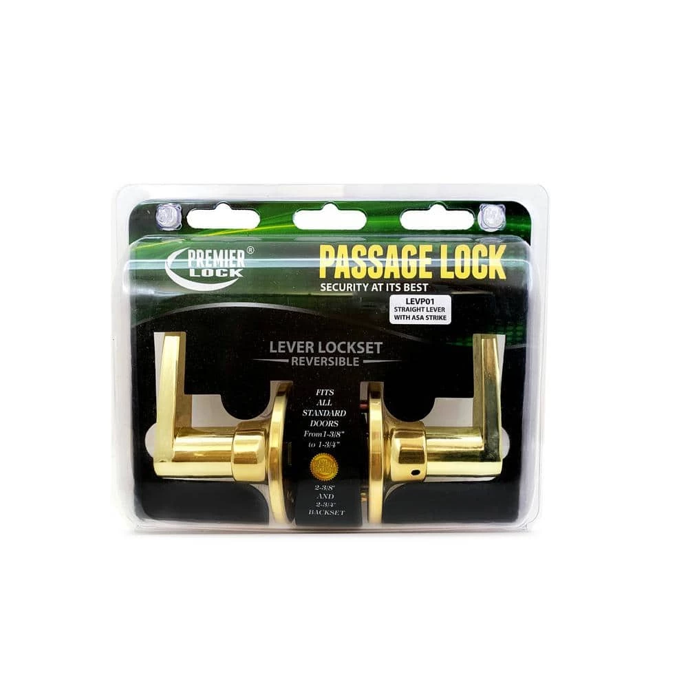 Premier Lock is an industry leader in providing functional, secure, and smart locksmith products for residential and commercial purposes. All cylinders used in Premier Lock products are made of solid brass to ensure an extended lifetime and protection against corrosion. Secure your hall or closet today with this stylish polished brass passage lever set.