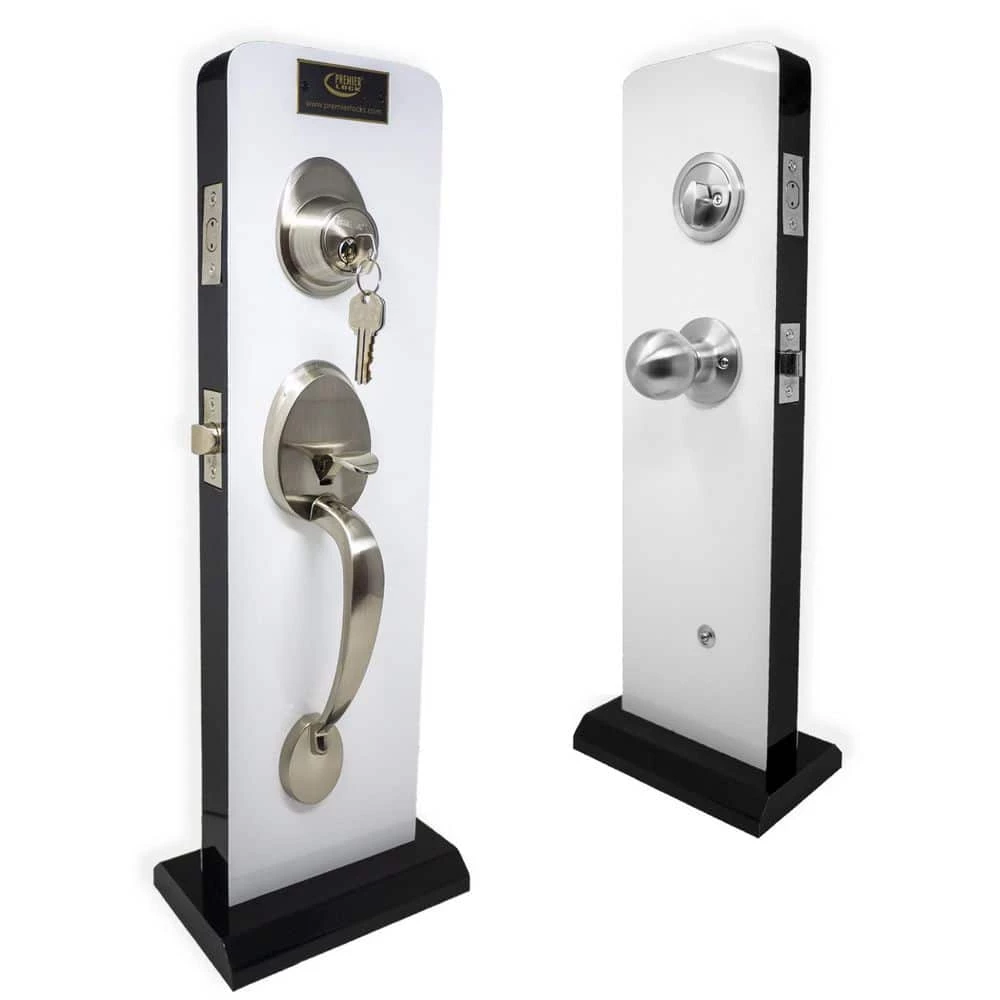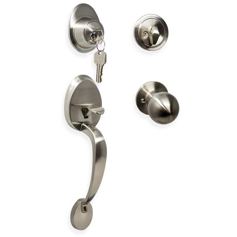 Secure your doorway with this sleek Satin Nickel Keyed Entry Door Handle set. Each handle has a 2-3/8 in. and 2-3/4 in. backset. for thick doors and was designed for maximum performance. Product is high-grade security grade 3 rated and includes 3 KW1 keys.