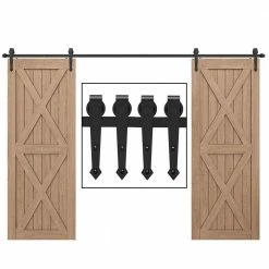 Wholesale 𧨠WINSOON 18 ft./216 in. Black Steel Heavy-Duty Rolling Barn Door Hardware Kit for Double Wood Doors with Non-Routed Floor Guide π
