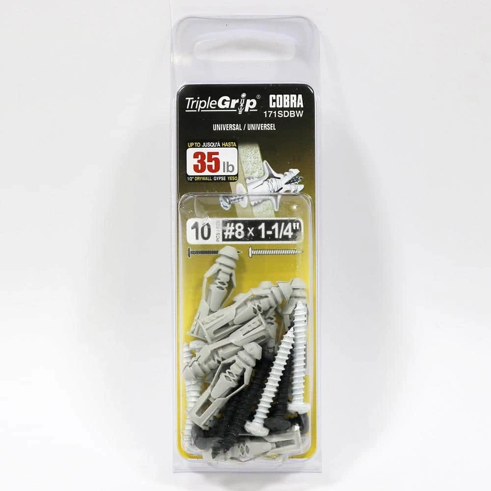 The TripleGrip is 1 of the most technologically advanced anchors on the market. It is designed with 2 expandable wings that grip tightly behind the drywall for a maximum holding power. Its advanced cam action technology expands, thereby creating an additional pressure against the side walls of the drywall or masonry. This also provides more stability and strength. 2 lateral wings hold the anchor in place, preventing any rotation while the screw is inserted.