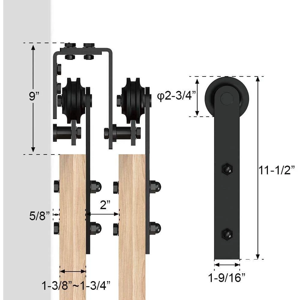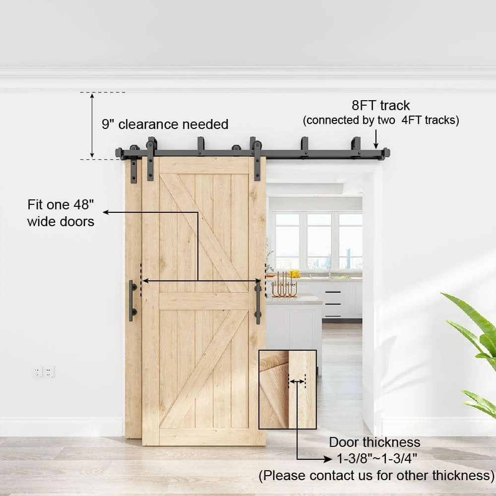 - The hardware can be used for two 48″ wide doors, suitable for 1 3/8″- 1 3/4″ thick doors such as barn doors, closet doors, garage doors, garden sheds, wine cellars, etc.