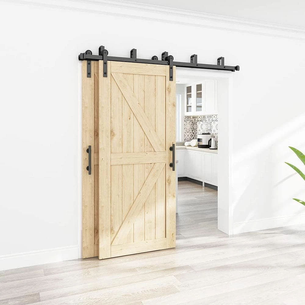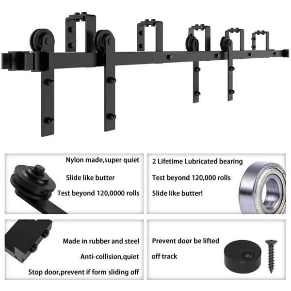 - Design: The classic and simple design will not be outdated. The balanced and smooth rail keeps the wheels rolling easily and guarantees the door not jumping out of the track. High density plastic wheels provide ultra-quiet experience. Door stoppers keep the exact sliding range and the strong floor guide stabilizes door movement.