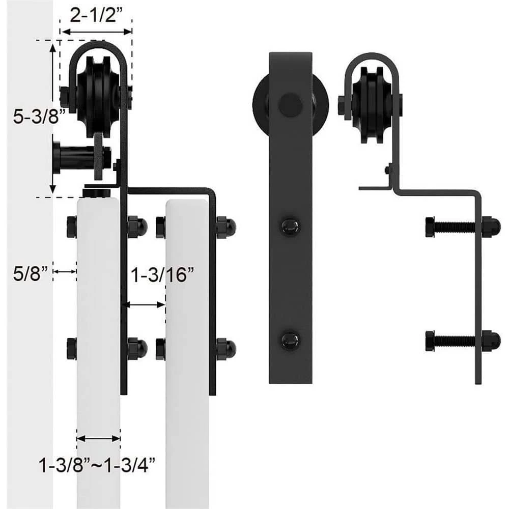 - Suitable for 1 3/8 in.- 1 3/4 in. thick doors such as barn doors, closet doors, garage doors, garden sheds, wine cellars, etc. door Weight Capacity: 230 lbs, need a minimum of 6 in. clearance from the top of your door to the ceiling (or crown molding, if any) for this kit to fit correctly